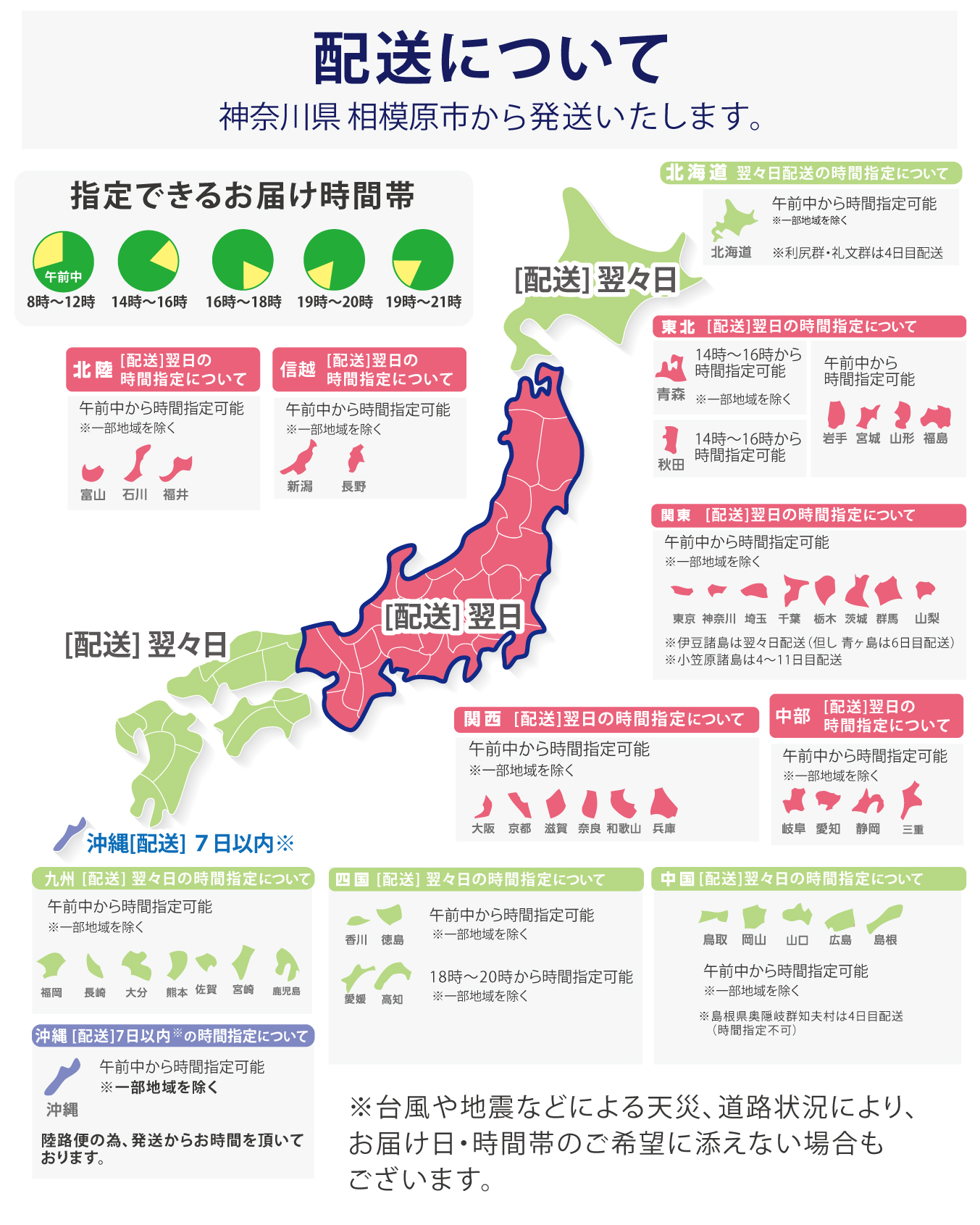 - ※沖縄県への出荷は陸路便の為、発送からお時間を頂いております。