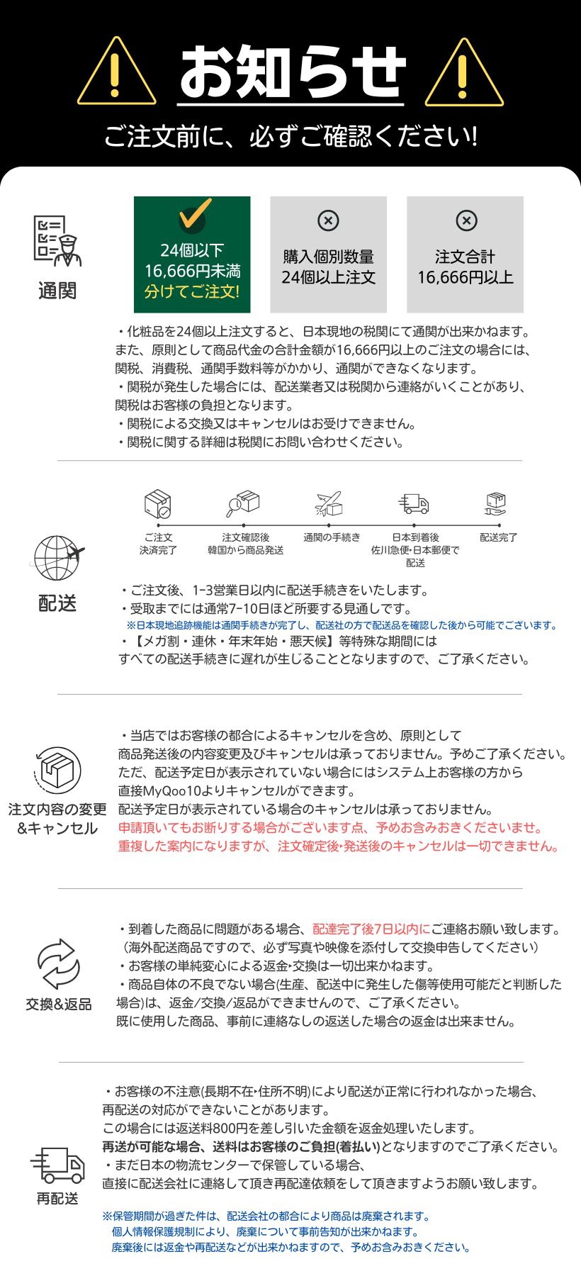 届いた商品に問題がある場合(誤配送、不良品など)、またはお客様の変心の場合は配送状態が「配送完了」になってから7日以内に連絡ください。その期限を切れて連絡がきた件は弊社で対応することができませんのでご注意ください。
