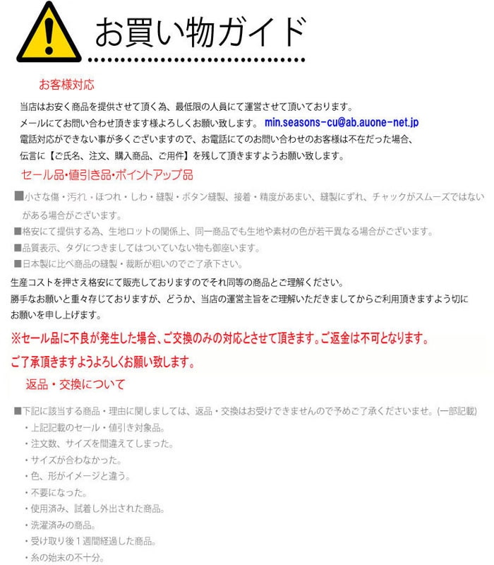 また、セール品の不良が発生した場合、ご交換のみの対応とさせて頂きます。