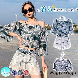 水着 レディース 体型カバー 3点セット ハイネック ビキニ 花柄 パレオ スカート リゾート韓国 ファッション おしゃれ 着痩せ 海水浴水着 レディース 体型カバー 3点セット ハイネック ビキニ