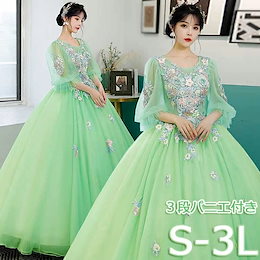 カラードレス 演奏会用ドレス 袖付き 大人 発表会 ロングドレス ステージ衣装 パステルカラー 舞台衣装 コンサート 結婚式 二次会 刺繍 グリーン チュールドレス 大きいサイズ 中高生 海外挙式 コ