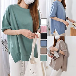 韓国ファッションtシャツ 半袖 レディース 夏Tシャツ カットソー Tシャツ カットソー半袖 綿 無地レディース トップス 大きいサイズ ロング 上着 ゆった プリントカットソ bts袖 綿