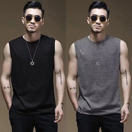 time sale夏用 無地 丸首 タンクトップ メンズ ルーズフィット ベスト スポーツ・フィットネス用 カジュアル 汎用性ノースリーブ インナーTシャツ