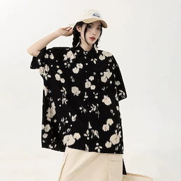 time saleシャツ 夏ゆったりカジュアル花柄シャツレディースins半袖花柄トップスシャツ 半袖 レディース トップス シースルートップス ブラウス半袖Tシャツ