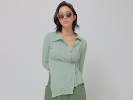 ブイネック ボタン リブ ニットTシャツ 韓国人気 全5色