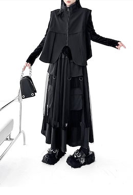 激安セール ブラック オーバーサイズトップ+ロングスカート 夏コーディネート サイズ選択可
