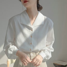 シャツ ブラウス レディース 長袖 パール 立ち襟 トップス 大人 可愛い 上品 エレガント ゆったり 体型カバー 着回し ファション オフィス カジュアル フォマール デート 通勤 春秋冬