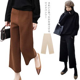 ワイドパンツ レディース ウール調 ガウチョ 9 分丈 ロング 長ズボン ウエストゴム 無地 大きいサイズ ウールライク リラックス 暖かい あったか ゆったり 体型カバー ボトムス