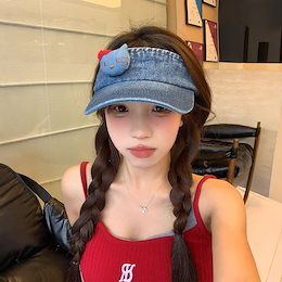 新型デニムのベレー帽の女性春の夏に日本の顔を見せます