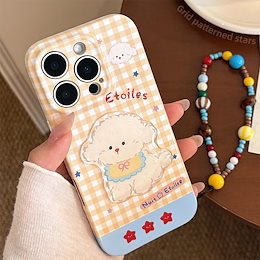 イエローチェック キャラクター iPhone16/17ProMax 対応 スマホケース 立体わんちゃん ストラップ 13 ソフト 14