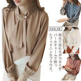 人気 シャツ ボウタイブラウス スーツ ブラウス ボウタイ 胸元パール ビジネス 春 インナー スカーフタイブラウス パール付 スカーフ 30代 長袖 透けにくい レディース 大人 オフィス タイ か