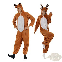 クリスマス サンタ 本格 トナカイ コスプレ 仮装 衣装 着ぐるみ オールインワン レディース メンズ フード付き もこもこ 表起毛 秋冬用 なりきり ロンパース 鹿 男女兼用 ユニセックス 大人 か
