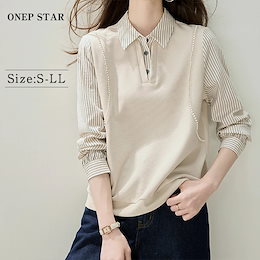 daily deal【挑戦最安値あり!】ストライプ切替×シャツ風デザイントップス レディース トップス シャツ 長袖 プルオーバー 配色ストライプ切替 きれいめ 春 秋 20代 30代 40代 50代 ワンピスター