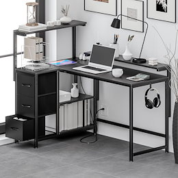 L字型コーナーデスク 収納棚付き 勉強机 学習デスク パソコンデスク 学習・作業・ドレッサー兼用 収納便利 省スペース設計 多機能 シンプルでおしゃれ 寝室・書斎・オフィス向け 日本語説明書付き