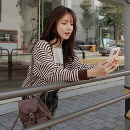 [ジャストワン] ストライプ 長袖 ボタン カーディガン [9カラー]