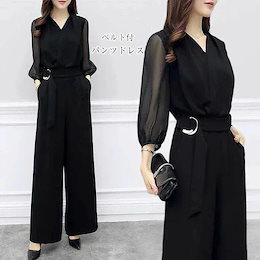 新作×大人気!パンツドレス 結婚式 セットアップ レディース オールインワン 大きいサイズ 長袖 パンツスーツ ワイドパンツ 卒業式 パーティードレス 着痩せ パンツ フォーマル パーティー 披露宴