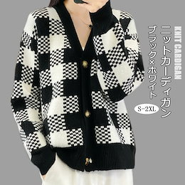 ニットカーディガン ニットパーカー チェック柄 秋 冬 レディース Vネック チェックニット トップス 長袖 ニット カーディガン ニットソー 羽織り ショート丈 ニットセーター カーデ アウター 織