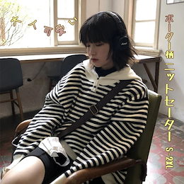 ニットセーター レディース 秋 冬 長袖 ニット ニットパーカー 厚手 パーカー セーター ニットウェア カットソー トップス ニットソー プルオーバー ボーダー柄 フード付き ドロップショルダー 長