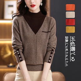 ハイネックニット ニット ニットソー トップス レディース 秋冬 インナーニット vネック ニットセーター リブ編み リブニット 切替 長袖 ブラウス セーター カットソー 防寒 秋 エレガント 防寒