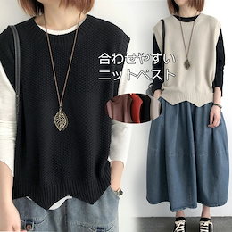 ニットベスト 秋 ベスト レディース ニット プルオーバー 秋冬 セーター トップス ブラウス アウター ジレ クルーネック トップス ノースリーブ 重ね着 無地 可愛い 丸首 ショート丈 レイヤード