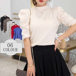 ニット レディース 春 パフスリーブ 長袖 トップス ニットトップス パワーショルダー セーター 秋冬 春 長め ニットセーター きれいめ ブラウス カットソー 伸縮 ニットソー ゆったり カジュアル