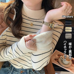 裏起毛 ニット セーター ハイネック インナーニット トップス 秋冬 裏ボア レディース ボーダー柄 ニットセーター プルオーバー 伸縮性 ベーシック 長袖 インナー カットソー ニットソー シンプル