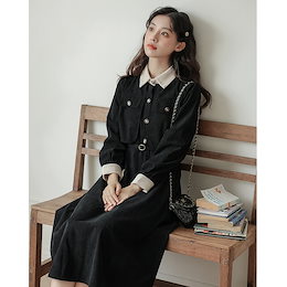 甘い ベビーカラー 長袖 体を修めてやせて見える 文芸 じゅんしょく 簡単な 通勤 淑女ワンピース