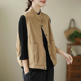 ベスト レディース ノースリーブ コットン 綿 秋ベスト ポケット付き トップス 前開き カーディガン vネック 前ボタン ゆったり おしゃれ 重ね着 レイヤード 無地 お洒落 可愛い ナチュラル シ