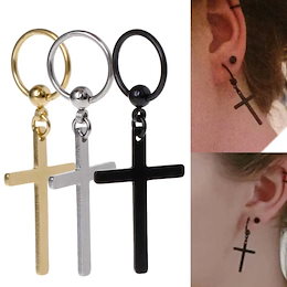 ボディピアス 十字架 ビッグロザリオクロスペンダント キャプティブビーズリング ゲージ 16 C 揺れる チャーム 黒金銀色 耳たぶ 軟骨 ヘリックス 人気 シンプル c161