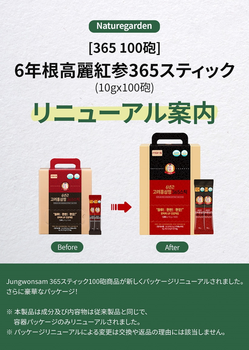 6年根高麗紅参精365スティック 元 (10gx100包)/健康機能食品
