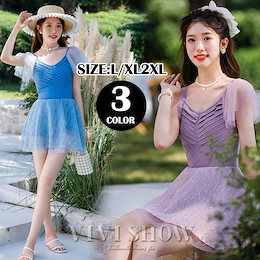 daily deal「最安値販売」水着 レディース ワンピース オールインワン 体型カバー オープンショルダー おしゃれ かわいい レース フリル袖 大きいサイズ