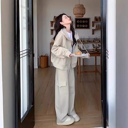 time saleデザイン性のあるカジュアルでファッショナブルなフード付きスポーツスウェットシャツ女性用セット 春秋新作ワイドパンツワークパンツツーピース