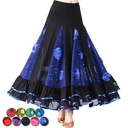 社交ダンススカートフリルロングスカート豪華モダンステージ衣装レディースボリュームスカート大人用競技舞台衣装練習着大工場製造