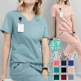 スクラブセットアップ上下セット白衣レディース半袖ドクター歯医者ユニフォーム女性美容サロンナース服医務衣介護施設大工場製造