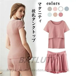 【2点セット】マタニティ授乳服パジャマ半袖ルームウェア上下セット授乳ママ授乳口前開き入院出産祝い出産準備産前産後授乳対応トップスショートパンツ大きいサイズおしゃれゆったりコットン大工場製造