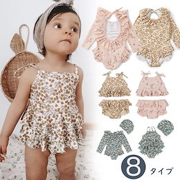 ベビー 水着 キッズ 帽子つき ワンピース 長袖 ラッシュガード 2点セット ロンパース 女の子 ベビースイミング かわいい フリル フラワー 保育園 幼稚園 水遊び
