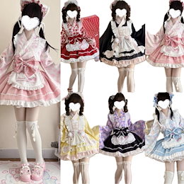 【2枚3oo円 割 引! 高評価!】500 Types クラシックメイド服 ロリータ赤/ピンク/緑/青/黄色/紫/黒 長袖 半袖フルセットワンピース バニーガール ハロウィン コスプレ