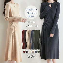 ワンピース レディース 秋冬 きれいめ ニットワンピース ニット リブニット 長袖 冬 秋 春 低身長 ロングワンピース ロング丈 マキシ丈 無地 大人 カジュアル オシャレ Aライン 通勤 ワンピ