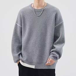 time saleラウンドネックセーター メンズ秋冬プルオーバーゆったり日系トレンド長袖メンズゆったりベースレイヤーニットトップス