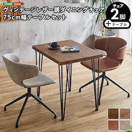 ホームテイスト ヴィンテージレザー調Dチェア2脚 75cm幅テーブル 3点セットSH-23-AMD3-SH-CAGY SH/キャメル/グレー メーカー直送