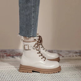 韓国ファッション 百掛け 厚底靴 シンプル 百掛け おしゃれ 学生 ショットブーツ 高級感 質感 快適 フラットシューズ 今年の流行