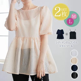 daily dealシアーギンガムブラウス×キャミソール シアー感ギンガム ボリュームスリーブ インナー付き ふんわり ギャザー ぽわん袖 二腕をカーバー 着回し力 涼しく着れる