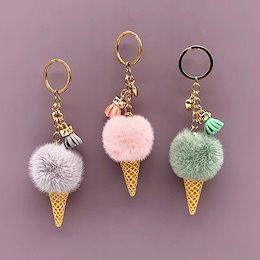 time saleかわいいバッグ用アイスクリームキーチェーン漫画のぬいぐるみペンダントコーンカーキーチェーンリングファーボールギフト