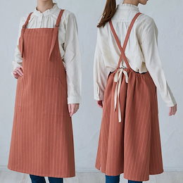 肩ひもリボン着丈調節ワンピースエプロン エプロンワンピース 肩紐 リボン 調整可能 綿 コットン ゆったり レディース カフェエプロン お尻が隠れる ストライプ ギンガムチェック