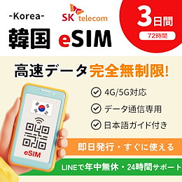 【Almond eSIM】韓国 2/3/4/5日間完全無制限 eSIM プラン 高速データ使い放題 LINE相談で当日発行可能 本人確認不要 simカード認証不要 SKT キャリア ソウル プリペイド