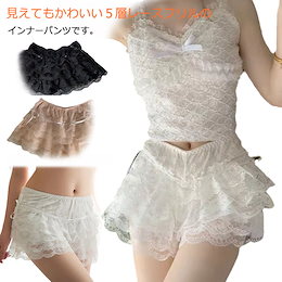 総レース インナーパンツ ショーツ スパッツ 5段 フリル ペチコート リボン 1分丈 下着 ペチパンツ ショートパンツ ドレス スカート 透け防止 レース シフォン キュロット ペチパン ホットパン