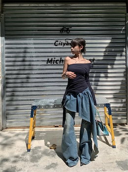 INSスタイル 縫付 オフショルダー 長袖 シャツ フェイク2ピース ブラウス トップス 上着 気質 ゆったりする エレガント