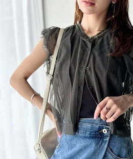 無地 ノースリーブ レース フリル・ラッフル シャツ・ブラウス [3タイプ]