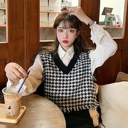 千鳥格子のベスト女性のとの韓国版のルーズショートベストウェアネットレッドノースリーブウエストコートウエストコートタイド