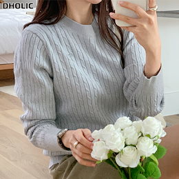 ニットウール混ボタンラウンドネックパンチングベーシック長袖カーディガン・1956318
